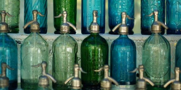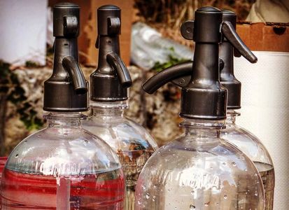 Our lovely soda siphon bottles - ready to be filled with pure sparkling water... over and over and over again.